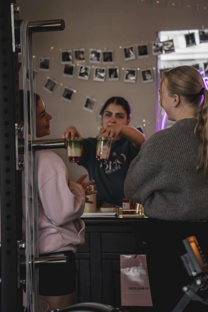 Ein wichtiger Bestandteil des Events war das bewusste Beisammensein nach den Pilates-Einheiten. Es ging nicht nur um das Training selbst, sondern um den Raum danach: Gespräche, Lachen und das Teilen des Moments. Dieses Miteinander machte deutlich, dass das Event mehr war als ein klassisches Workout.